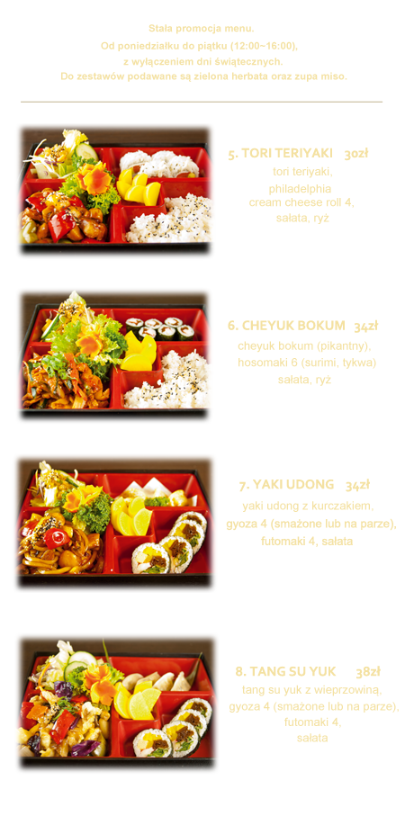 | BENTO / ZESTAWY LUNCHOWE | ZESTAWY SUSHI | ZESTAWY SUSHI I SASHIMI |